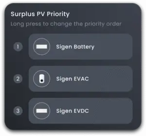 Laad elektrische auto's slim op met overtollige zonne-energie. Pas de prioriteit van overtollige zonne-energie aan om de lader en de thuisbelasting te rangschikken.
