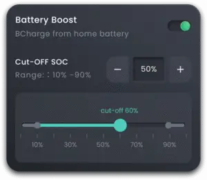 Gebruik de accu om de laadsnelheid van elektrische voertuigen te verhogen met extra energie. Stel de SOC-uitschakeltijd in voor intelligent stroomverbruik.